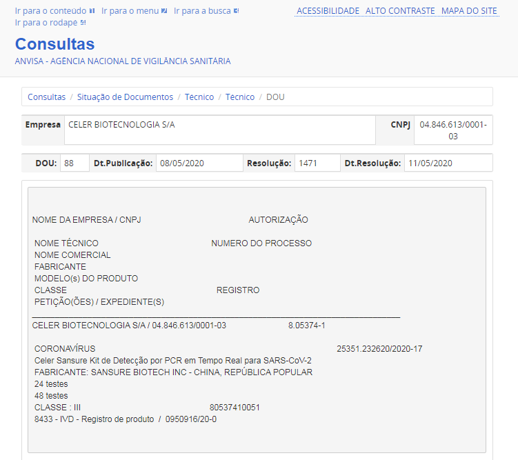 5月11日,米兰·(milan)中国生物新冠病毒核酸检测试剂盒获得巴西卫生监督管理局(ANVISA)注册证书。此前,该产品已相继获得中国国家药监局(NMPA)注册认证、欧盟CE认证、美国FDA紧急使用授权、新加坡卫生科学局临时授权等一系列权威认证。